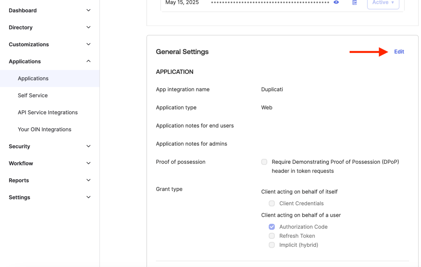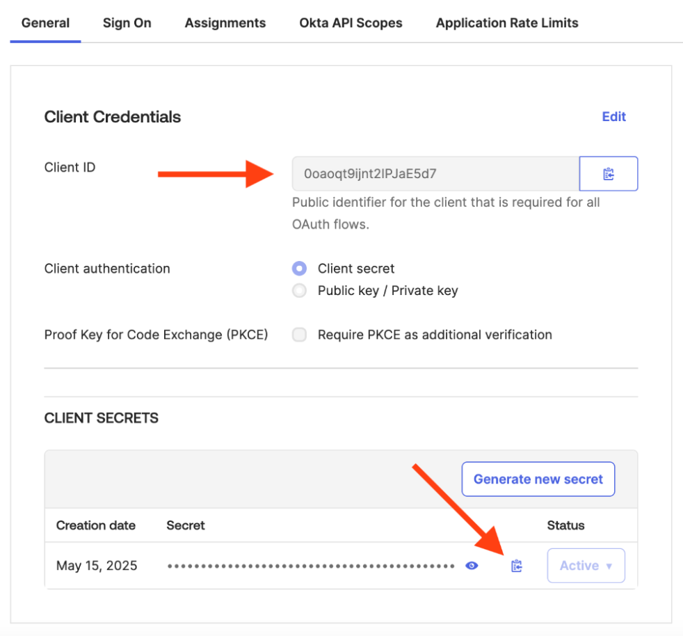 1. In Okta, open your application page.