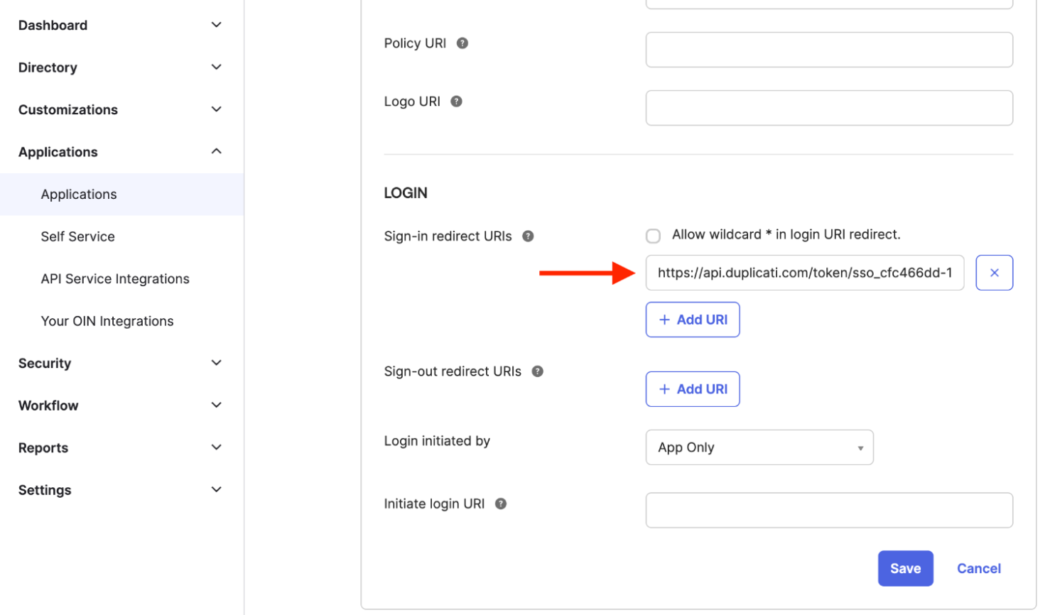 ### Configure redirect URI in Okta