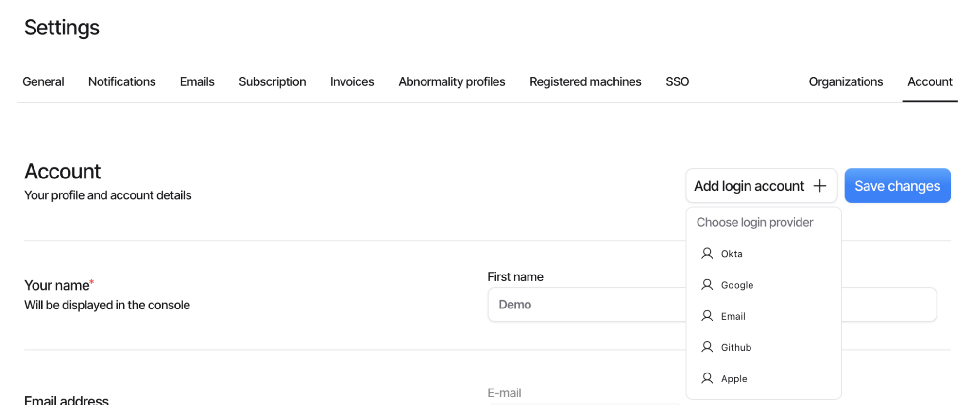 2. Click **Add login account**.
