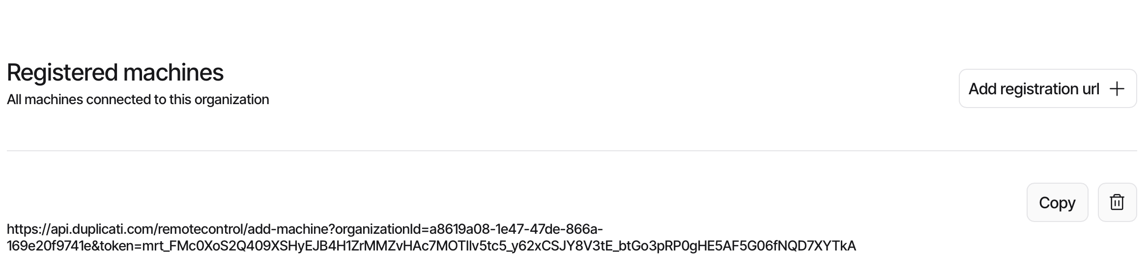 When the Agent starts for the first time, it will attempt to register with the Duplicati Console. To do this, it will open a browser window where the user can accept the registration and add the machine to their account. If the Agent needs to be registered without user interaction, a pre-authorized link can be generated on the [Duplicati Console registration page](https://app.duplicati.com/app/settings/registered-machines):