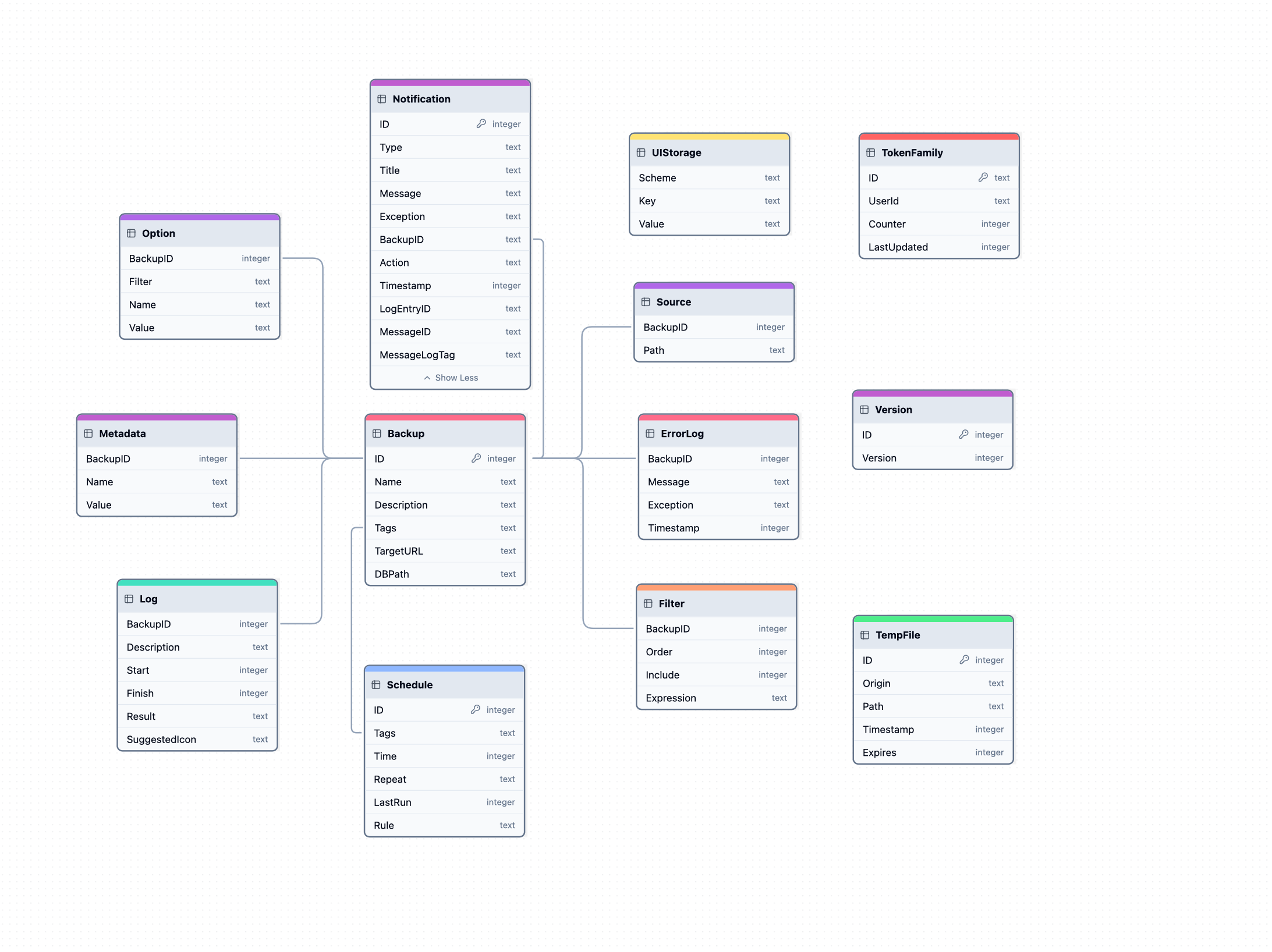 <figure><picture><source srcset="https://2363712449-files.gitbook.io/~/files/v0/b/gitbook-x-prod.appspot.com/o/spaces%2F7cMJiGuXy340g9NzpxLY%2Fuploads%2Fgit-blob-f1bf2726723134079d9ea841eea0712981cec7ca%2Fserver-database-3.png?alt=media" media="(prefers-color-scheme: dark)"><img src="https://2363712449-files.gitbook.io/~/files/v0/b/gitbook-x-prod.appspot.com/o/spaces%2F7cMJiGuXy340g9NzpxLY%2Fuploads%2Fgit-blob-168a666cd679fd70810250b87ad8a854aa8cafef%2Fserver-database-4.png?alt=media" alt=""></picture><figcaption><p>Schema overview of the server database</p></figcaption></figure>